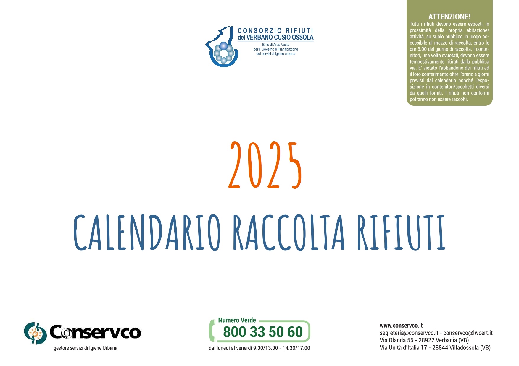 Calendari raccolta rifiuti anno 2025